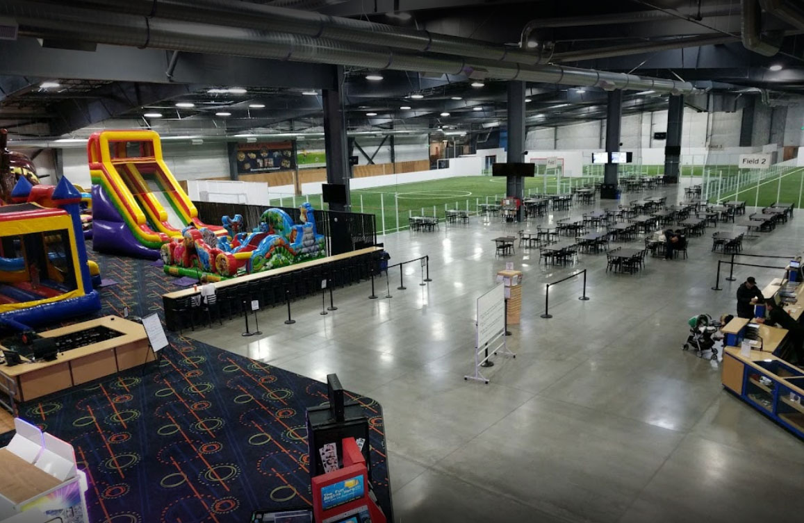 2 turf fields, 2 basketball courts, 1 volleyball court, concession area, multi-purpose rooms