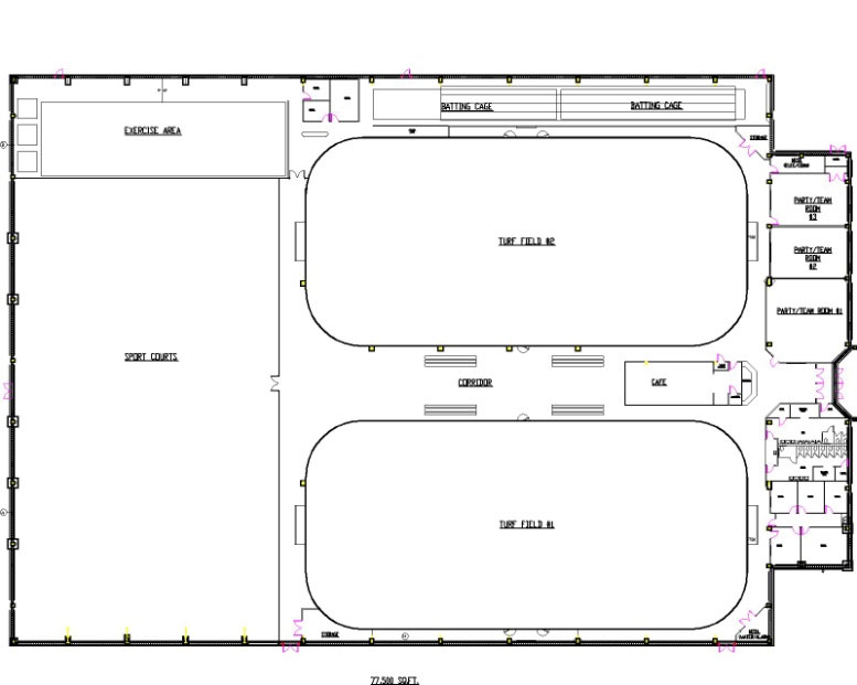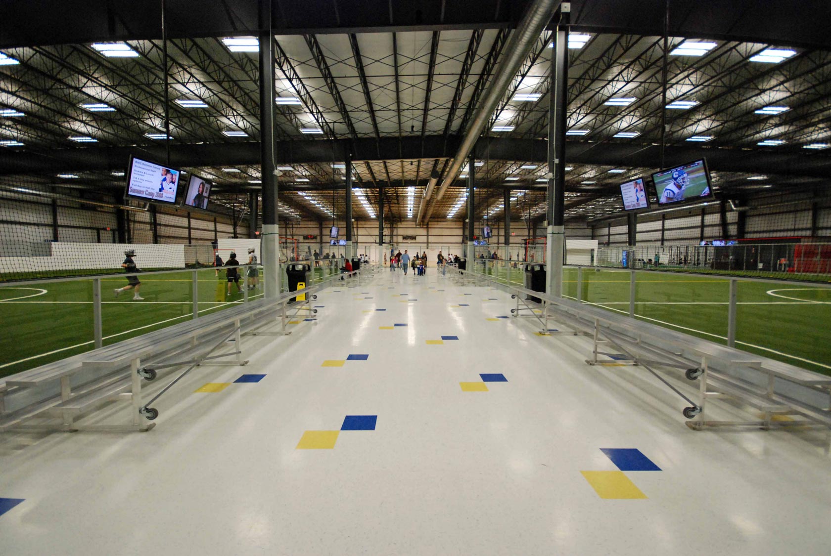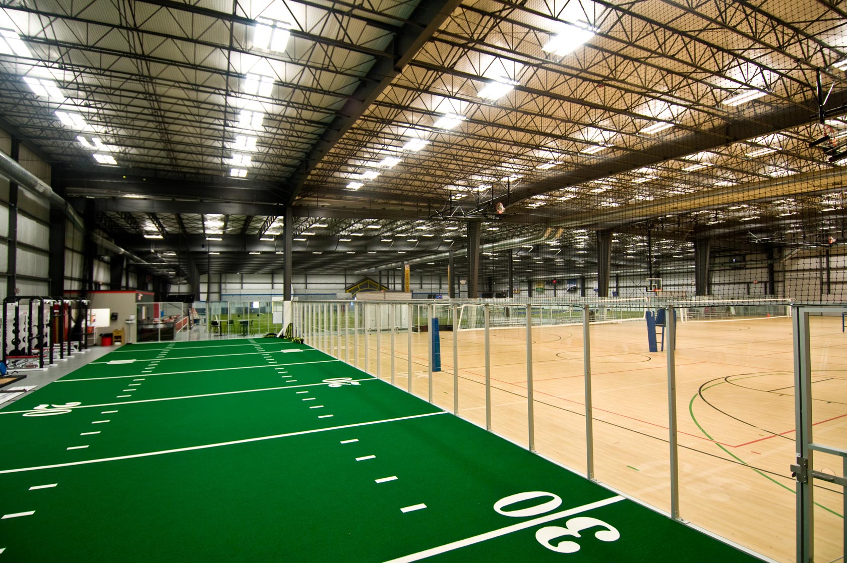 2 indoor turf fields, 3 basketball courts, 4 volleyball courts, concession area, large meeting/party rooms